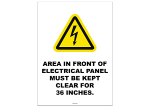 Area in Front of Electrical Panel Must be Kept Clear Sticker