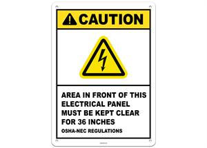 Caution Area in Front of Electrical Panel Kept Clear for 36 inches OSHA-NEC Regulations Sign