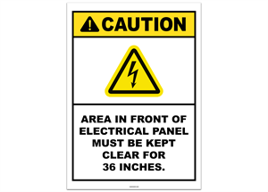 Caution Area in Front of Electrical Panel Must be Kept Clear Sticker