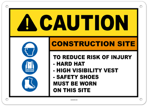 Caution Construction Site To Reduce Risk of Injury - Hard Hat - High Visibility Vest - Safety Shoes Must Be Worn On This Site Sign 2