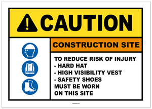 Caution Construction Site To Reduce Risk of Injury - Hard Hat - High Visibility Vest - Safety Shoes Must Be Worn On This Site Sticker 2