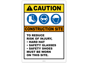 Caution Construction Site To Reduce Risk of Injury - Hard Hat - Safety Glasses - Safety Shoes Must Be Worn On This Site Sticker