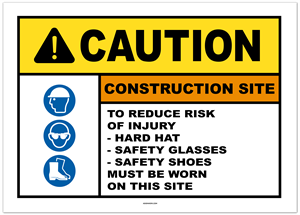 Caution Construction Site To Reduce Risk of Injury - Hard Hat - Safety Glasses - Safety Shoes Must Be Worn On This Site Sticker 2