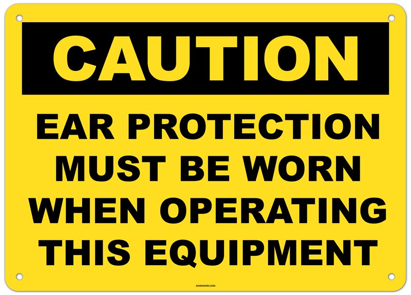 Caution Ear Protection Must Be Worn When Operating This Equipment Sign