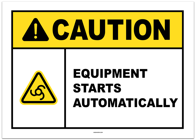 Caution Equipment Starts Automatically Sticker