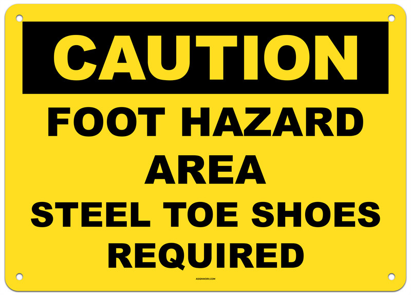 Caution Foot Hazard Area Steel Toe Shoes Required Sign