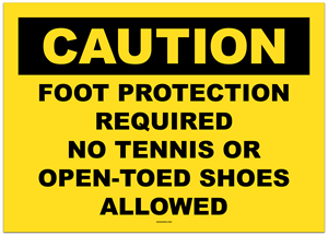 Caution Foot Protection Required No Tennis or Open-Toed Shoes Allowed Sticker