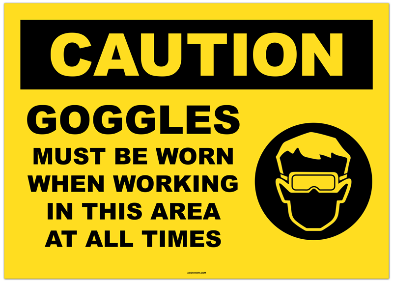 Caution Goggles Must Be Worn When Working in this Area at All Times Sticker