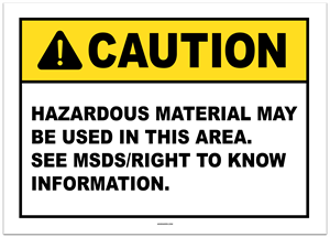 Caution Hazardous Material Used in Area See MSDS/Right to Know Information Sticker