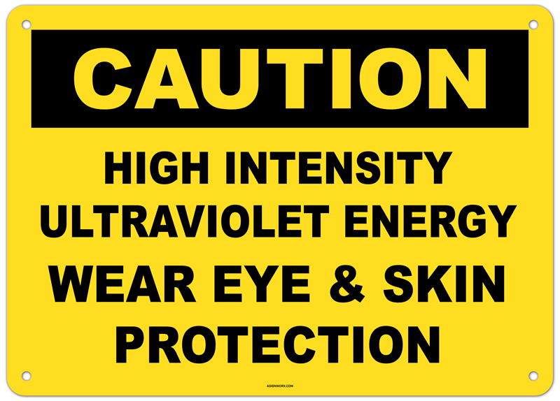 Caution High Intensity Ultraviolet Energy Wear Eye and Skin Protection Sign