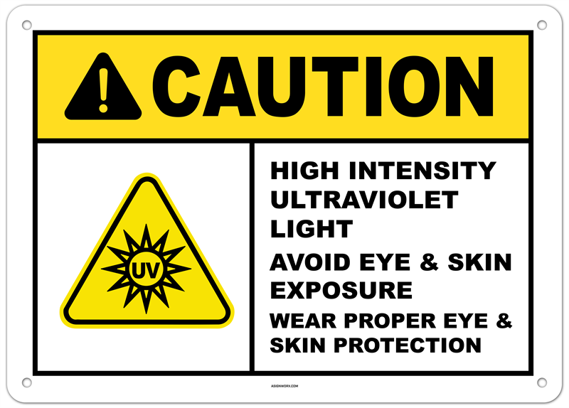 Caution High Intensity Ultraviolet Light Avoid Eye & Skin Exposure Sign