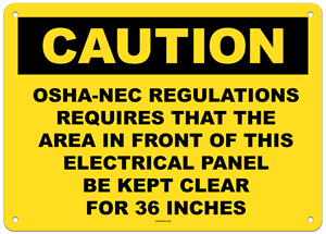 Caution OSHA-NEC Require Area in Front of Electrical Panel Must be Kept Clear Sign