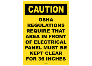 Caution OSHA Require Area in Front of Electrical Panel Must be Kept Clear Sticker