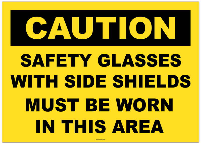 Caution Safety Glasses With Side Shields Must Be Worn In This Area Sticker