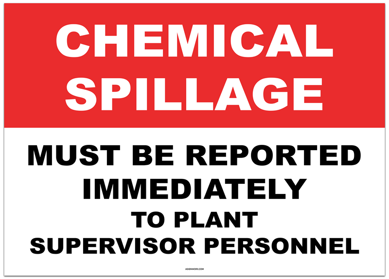 Chemical Spillage Must Be Reported Immediately Sticker