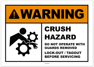 Warning Crush Hazard Do Not Operate With Guards Removed Sticker