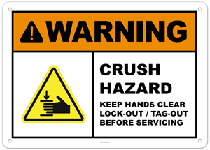Warning Crush Hazard Keep Hands Clear Lock-out / Tagout Before Servicing Sign