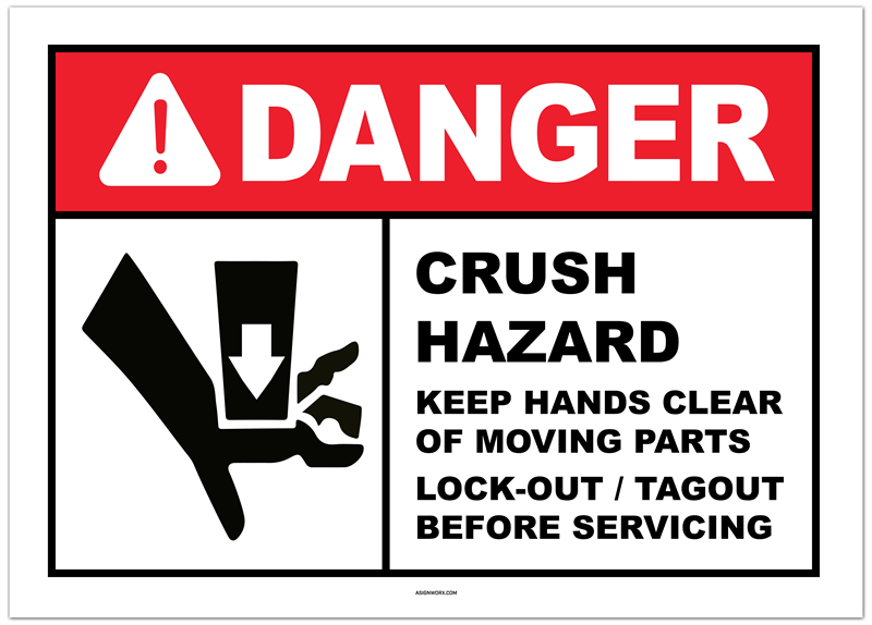 Danger Crush Hazard Keep Hands Clear of Moving Parts Lock-out / Tagout Before Servicing Sticker 2