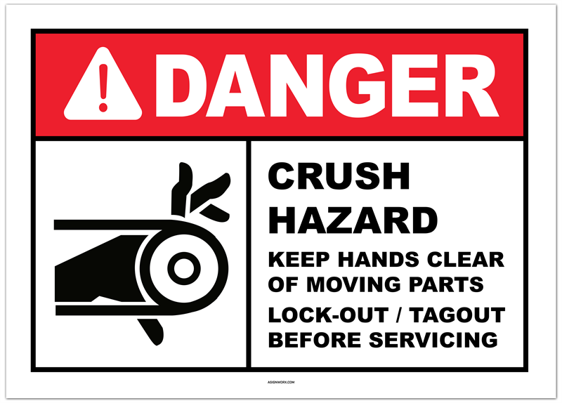 Danger Crush Hazard Keep Hands Clear of Moving Parts Lock-out / Tagout Before Servicing Sticker 3