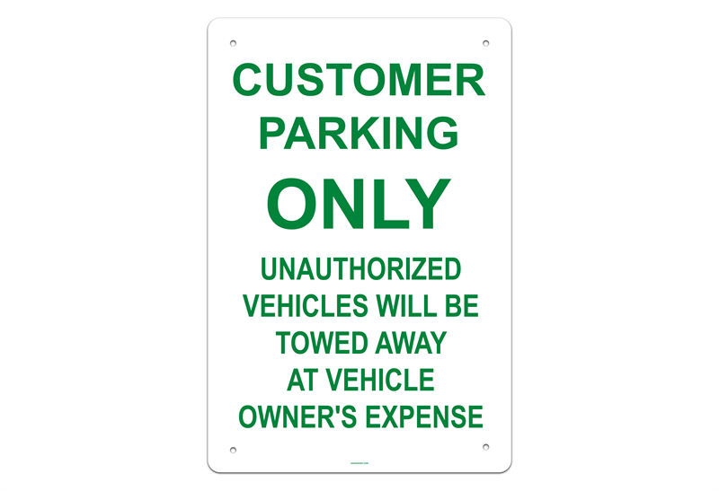 Customer Parking Only Unauthorized Vehicles Will Be Towed Away At Vehicle Owner's Expense Sign