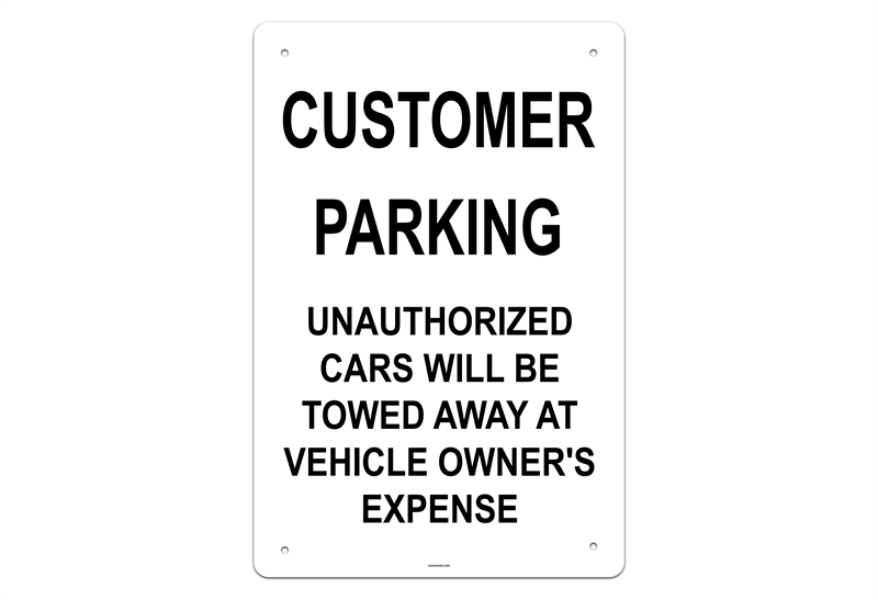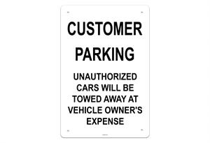 Customer Parking Unauthorized Cars Will Be Towed Away At Vehicle Owner's Expense Sign