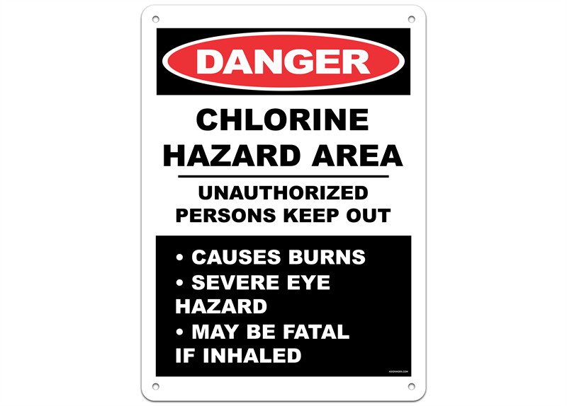 Danger Chlorine Hazard Area Unauthorized Persons Keep Out Sign