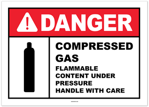 Danger Compressed Gas Flammable Content Under Pressure Handle With Care Sticker