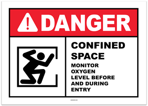 Danger Confined Space Monitor Oxygen Level Before and During Entry Sticker
