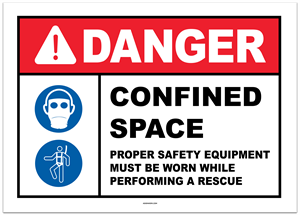 Danger Confined Space Safety Equipment Must Be Worn While Rescue Sticker