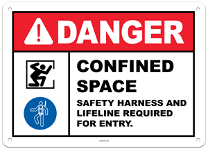 Danger Confined Space Safety Harness and Lifeline Required for Entry Sign