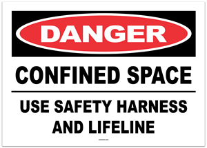 Danger Confined Space Use Safety Harness and Lifeline Sticker