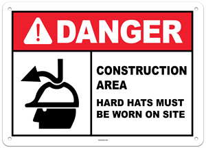 Danger Construction Area Hard Hats Must Be Worn on Site Sign