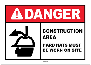 Danger Construction Area Hard Hats Must Be Worn on Site Sticker