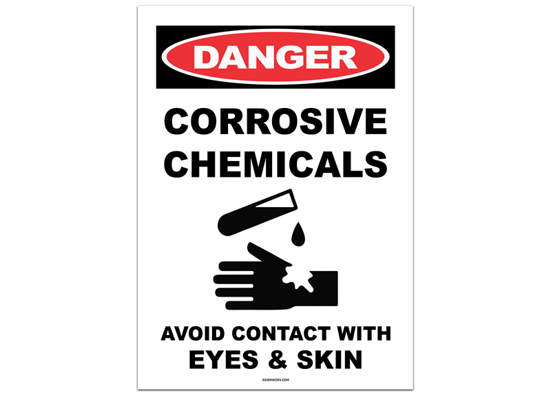 Danger Corrosive Chemicals Avoid Contact With Eyes & Skin Sticker