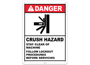 Danger Crush Hazard Stay Clear of Machine Follow Lockout Procedures Sign