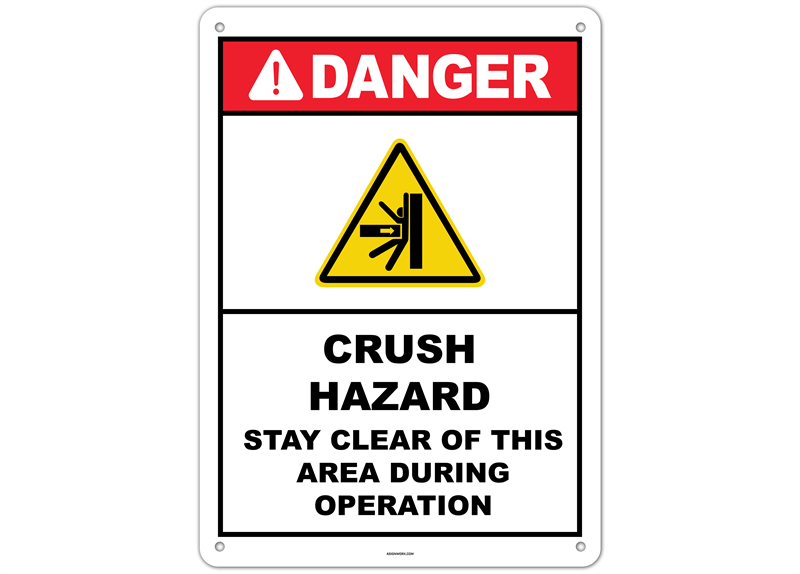 Danger Crush Hazard Stay Clear of this Area During Operation Sign