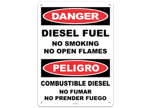 Danger Diesel Fuel No Smoking No Open Flames Bilingual Sign