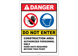Danger Do Not Enter Construction Area Authorized Personnel Only Hard Hats Required Beyond This Point Sticker