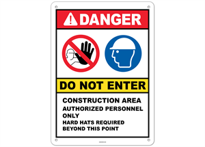 Danger Do Not Enter Construction Area Authorized Personnel Only Hard Hats Required Beyond This Point Sign