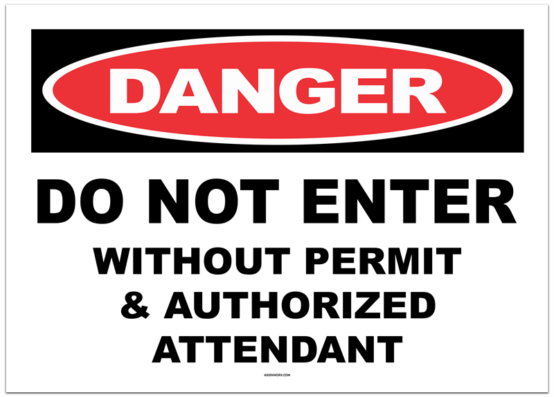 Danger Do Not Enter Without Permit & Authorized Attendant Sticker