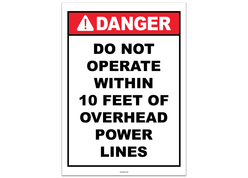 Danger Do Not Operate Within 10 Feet of Overhead Power Lines Sticker