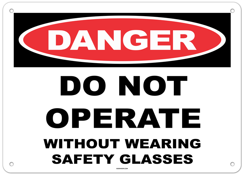 Danger Do Not Operate Without Wearing Safety Glasses Sign