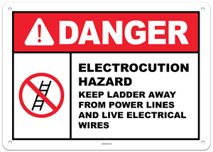 Danger Electrocution Hazard Keep Ladder Away Sign