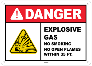 Danger Explosive Gas No Smoking No Open Flames Within 35 ft. Sign