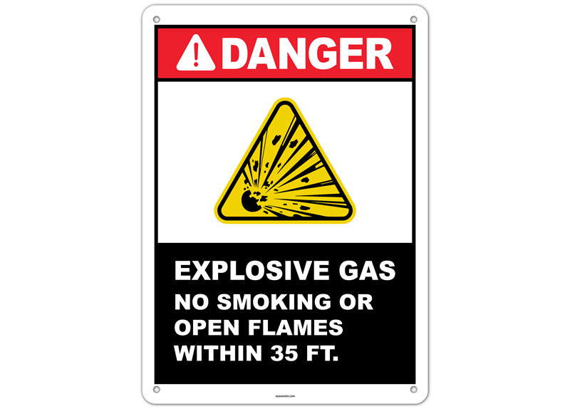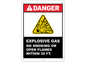 Danger Explosive Gas No Smoking or Open Flames Within 35 ft. Sign