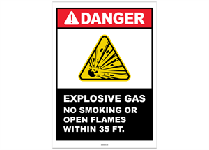 Danger Explosive Gas No Smoking or Open Flames Within 35 ft. Sticker