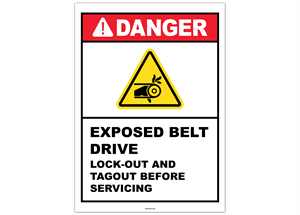 Danger Exposed Belt Drive Lock-out and Tagout Before Servicing Sticker