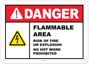 Danger Flammable Area Risk of Fire or Explosion No Hot Work Prohibited Sign