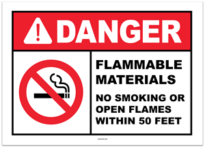 Danger Flammable Materials No Smoking or Open Flames Within 50 Feet Sticker