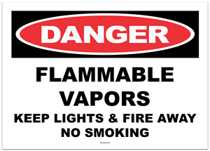 Danger Flammable Vapors Keep Lights & Fire Away No Smoking Sticker